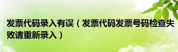 关于发票代码录入有误,发票代码发票号码检查失败请重新录入这个很多人还不知道,今天菲菲来为大家解答以上的问题,现在让我们一起来看看吧!