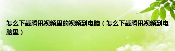 关于怎么下载腾讯视频里的视频到电脑,怎么下载腾讯视频到电脑里这个很多人还不知道,今天菲菲来为大家解答以上的问题,现在让我们一起来看看吧!