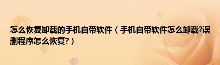 大家好,今天小悦来为大家解答以上问题。怎么恢复卸载的手机自带软件,手机自带软件怎么卸载?误删程序怎么恢复?很多人还不知道,现在让我们一起来看看吧!