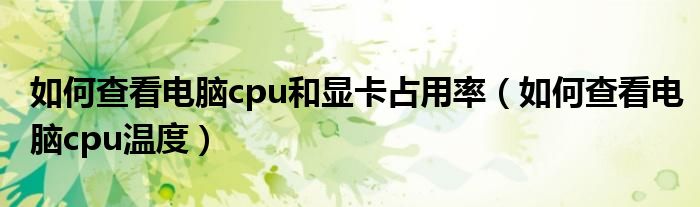 如何查看电脑cpu和显卡占用率(如何查看电脑cpu温度)