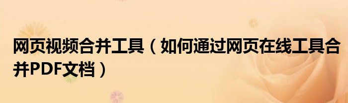 网页视频合并工具(如何通过网页在线工具合并PDF文档)