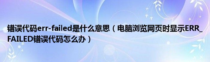 大家好,今天小悦来为大家解答以上问题。错误代码err-failed是什么意思,电脑浏览网页时显示ERR_FAILED错误代码怎么办很多人还不知道,现在让我们一起来看看吧!