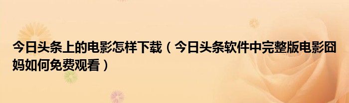 大家好,今天小悦来为大家解答以上问题。今日头条上的电影怎样下载,今日头条软件中完整版电影囧妈如何免费观看很多人还不知道,现在让我们一起来看看吧!