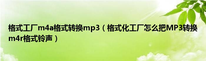 大家好,今天小悦来为大家解答以上问题。格式工厂m4a格式转换mp3,格式化工厂怎么把MP3转换m4r格式铃声很多人还不知道,现在让我们一起来看看吧!