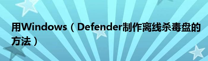 用Windows(Defender制作离线杀毒盘的方法)