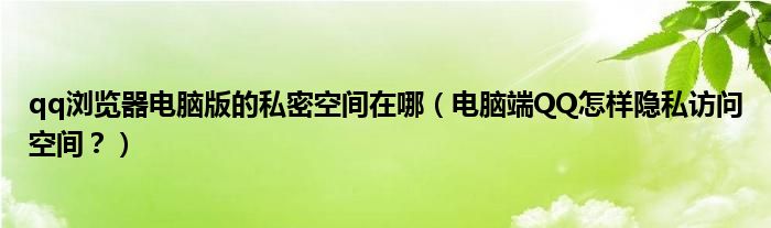 大家好,今天小悦来为大家解答以上问题。qq浏览器电脑版的私密空间在哪,电脑端QQ怎样隐私访问空间?很多人还不知道,现在让我们一起来看看吧!