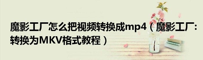 大家好,今天小悦来为大家解答以上问题。魔影工厂怎么把视频转换成mp4,魔影工厂:转换为MKV格式教程很多人还不知道,现在让我们一起来看看吧!