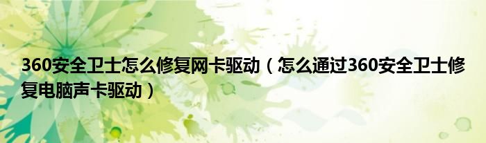 360安全卫士怎么修复网卡驱动(怎么通过360安全卫士修复电脑声卡驱动)