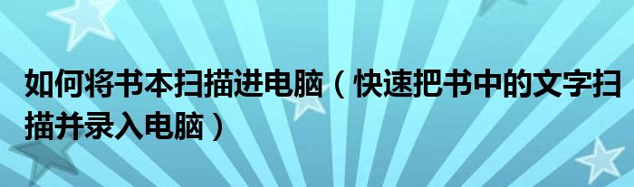 如何将书本扫描进电脑(快速把书中的文字扫描并录入电脑)