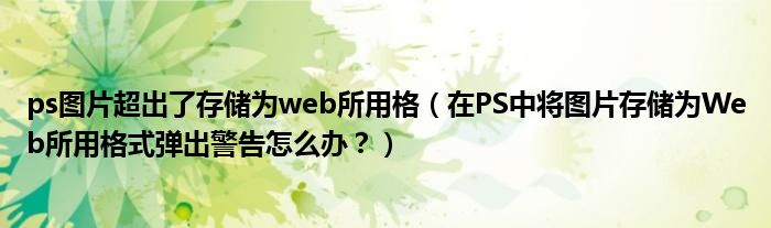 大家好,今天小悦来为大家解答以上问题。ps图片超出了存储为web所用格,在PS中将图片存储为Web所用格式弹出警告怎么办?很多人还不知道,现在让我们一起来看看吧!