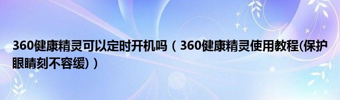 大家好,今天小悦来为大家解答以上问题。360健康精灵可以定时开机吗,360健康精灵使用教程(保护眼睛刻不容缓)很多人还不知道,现在让我们一起来看看吧!