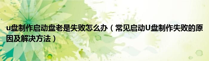 大家好,今天小悦来为大家解答以上问题。u盘制作启动盘老是失败怎么办,常见启动U盘制作失败的原因及解决方法很多人还不知道,现在让我们一起来看看吧!