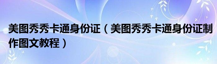 大家好,今天小悦来为大家解答以上问题。美图秀秀卡通身份证,美图秀秀卡通身份证制作图文教程很多人还不知道,现在让我们一起来看看吧!