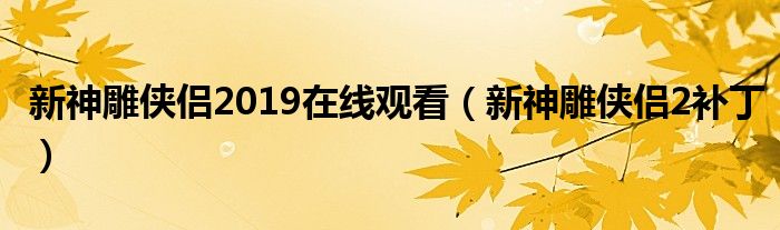 新神雕侠侣2019在线观看(新神雕侠侣2补丁)