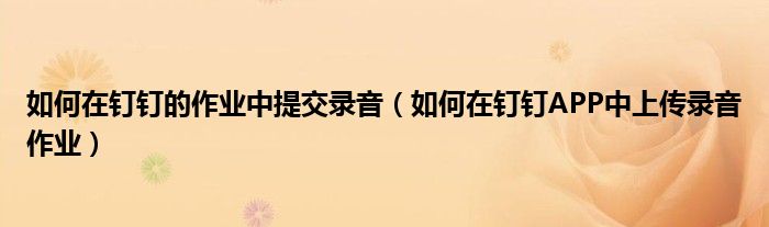 大家好,今天小悦来为大家解答以上问题。如何在钉钉的作业中提交录音,如何在钉钉APP中上传录音作业很多人还不知道,现在让我们一起来看看吧!