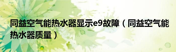 大家好,小飞来为大家解答以上问题,同益空气能热水器显示e9故障,同益空气能热水器质量很多人还不知道,现在让我们一起来看看吧!