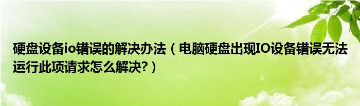 大家好,今天小悦来为大家解答以上问题。硬盘设备io错误的解决办法,电脑硬盘出现IO设备错误无法运行此项请求怎么解决?很多人还不知道,现在让我们一起来看看吧!