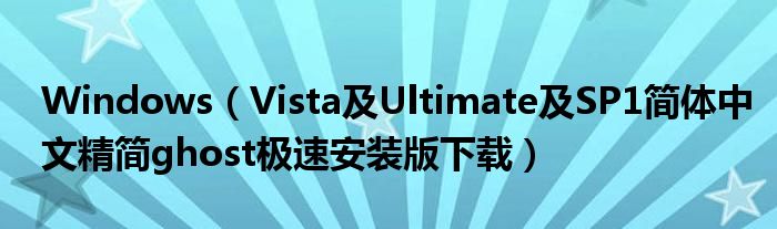 Windows(Vista及Ultimate及SP1简体中文精简ghost极速安装版下载)