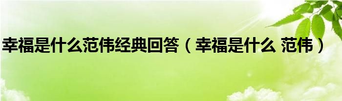 幸福是什么范伟经典回答,幸福是什么 范伟这个很多人还不知道,小飞来为大家解答以上的问题。现在让我们一起来看看吧!