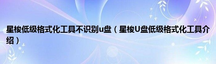 大家好,小太来为大家解答以上问题。星梭低级格式化工具不识别u盘,星梭U盘低级格式化工具介绍很多人还不知道,现在让我们一起来看看吧!