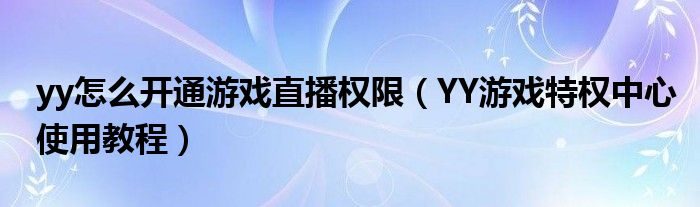 大家好,小太来为大家解答以上问题。yy怎么开通游戏直播权限,YY游戏特权中心使用教程很多人还不知道,现在让我们一起来看看吧!