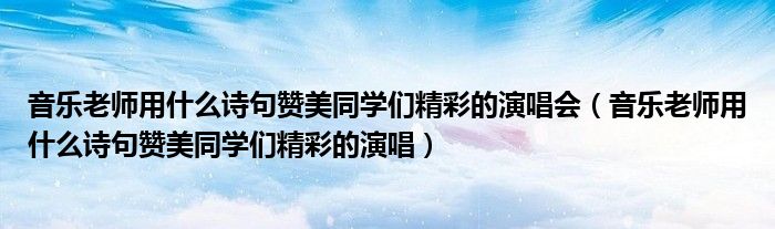 音乐老师用什么诗句赞美同学们精彩的演唱会,音乐老师用什么诗句赞美同学们精彩的演唱这个很多人还不知道,小飞来为大家解答以上的问题。现在让我们一起来看看吧!