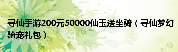 寻仙手游200元50000仙玉送坐骑,寻仙梦幻骑宠礼包这个很多人还不知道,小飞来为大家解答以上的问题。现在让我们一起来看看吧!