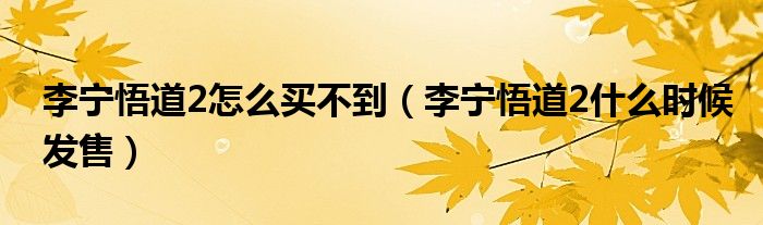 李宁悟道2怎么买不到(李宁悟道2什么时候发售)