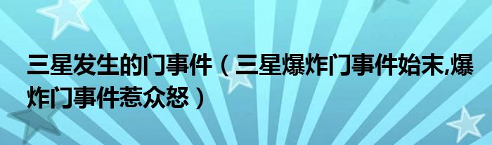 大家好,小常来为大家解答以上问题。三星发生的门事件,三星爆炸门事件始末,爆炸门事件惹众怒很多人还不知道,现在让我们一起来看看吧!