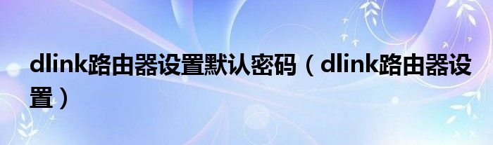 dlink路由器设置默认密码(dlink路由器设置)