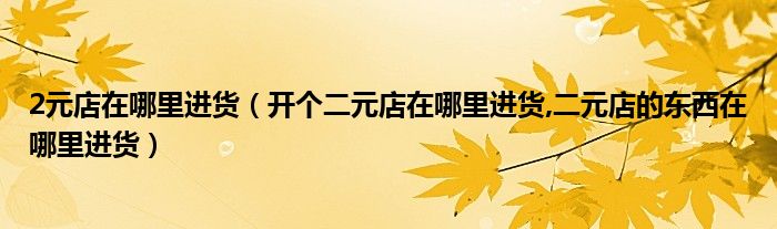 2元店在哪里进货(开个二元店在哪里进货,二元店的东西在哪里进货)