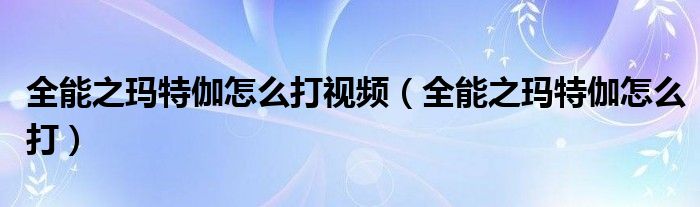 大家好,小晋来为大家解答以下问题,关于全能之玛特伽怎么打视频,全能之玛特伽怎么打很多人还不知道,今天让我们一起来看看吧!