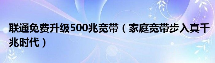大家好,小常来为大家解答以上问题。联通免费升级500兆宽带,家庭宽带步入真千兆时代很多人还不知道,现在让我们一起来看看吧!