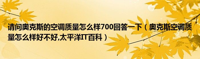 大家好,小常来为大家解答以上问题。请问奥克斯的空调质量怎么样700回答一下,奥克斯空调质量怎么样好不好,太平洋IT百科很多人还不知道,现在让我们一起来看看吧!