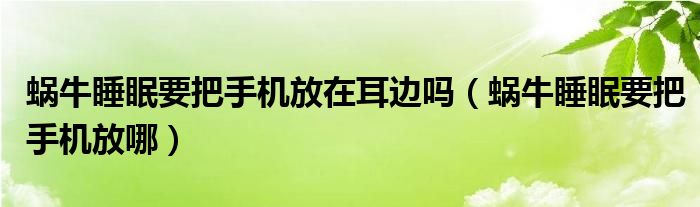 大家好,跳跳为你解答以上问题。蜗牛睡眠要把手机放在耳边吗,蜗牛睡眠要把手机放哪这个问题很多人还不知道,现在让我们一起来看看吧!