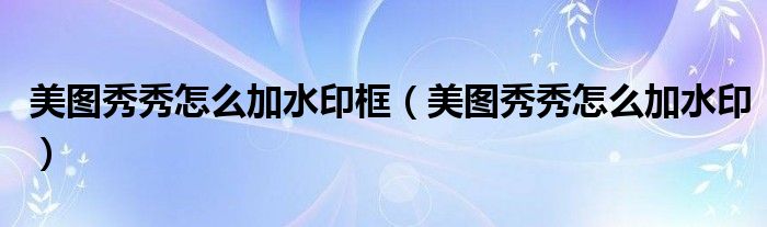 大家好,跳跳为你解答以上问题。美图秀秀怎么加水印框,美图秀秀怎么加水印这个问题很多人还不知道,现在让我们一起来看看吧!