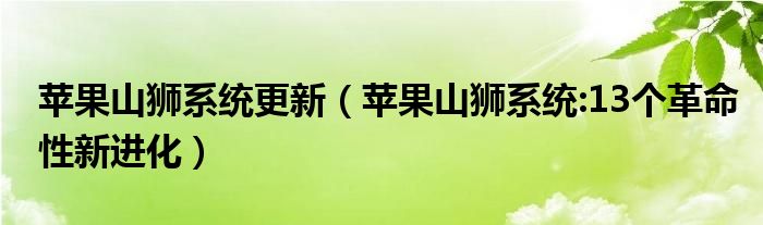 大家好,今天小悦来为大家解答以上问题。苹果山狮系统更新,苹果山狮系统:13个革命性新进化很多人还不知道,现在让我们一起来看看吧!