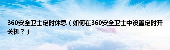 大家好,今天小悦来为大家解答以上问题。360安全卫士定时休息,如何在360安全卫士中设置定时开关机?很多人还不知道,现在让我们一起来看看吧!