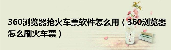 360浏览器抢火车票软件怎么用(360浏览器怎么刷火车票)