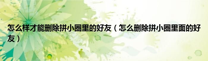 怎么样才能删除拼小圈里的好友(怎么删除拼小圈里面的好友)