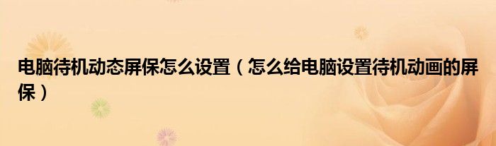 大家好,今天小悦来为大家解答以上问题。电脑待机动态屏保怎么设置,怎么给电脑设置待机动画的屏保很多人还不知道,现在让我们一起来看看吧!