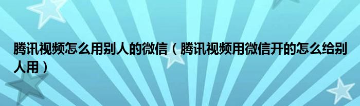 腾讯视频怎么用别人的微信(腾讯视频用微信开的怎么给别人用)