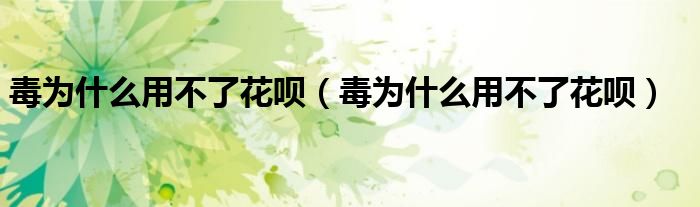 大家好,跳跳为你解答以上问题。毒为什么用不了花呗,毒为什么用不了花呗这个问题很多人还不知道,现在让我们一起来看看吧!