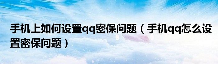 大家好,小晋来为大家解答以下问题,关于手机上如何设置qq密保问题,手机qq怎么设置密保问题很多人还不知道,今天让我们一起来看看吧!