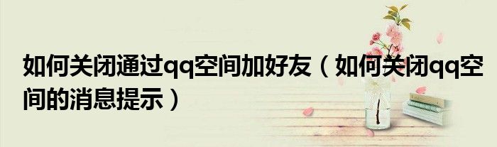 大家好,跳跳为你解答以上问题。如何关闭通过qq空间加好友,如何关闭qq空间的消息提示这个问题很多人还不知道,现在让我们一起来看看吧!