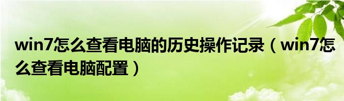 大家好,慧慧来为大家解答以上问题,win7怎么查看电脑的历史操作记录,win7怎么查看电脑配置很多人还不知道,现在让我们一起来看看吧!