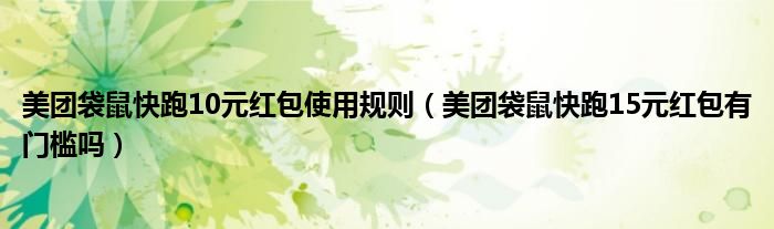 大家好,跳跳为你解答以上问题。美团袋鼠快跑10元红包使用规则,美团袋鼠快跑15元红包有门槛吗这个问题很多人还不知道,现在让我们一起来看看吧!