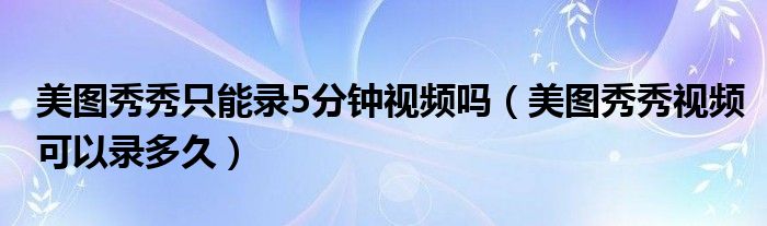 大家好,跳跳为你解答以上问题。美图秀秀只能录5分钟视频吗,美图秀秀视频可以录多久这个问题很多人还不知道,现在让我们一起来看看吧!