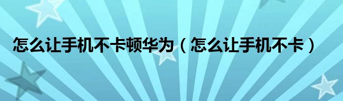 怎么让手机不卡顿华为(怎么让手机不卡)