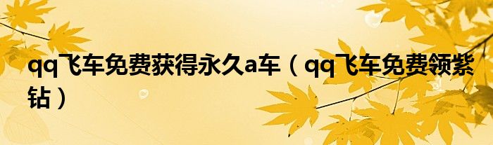 大家好,慧慧来为大家解答以上问题,qq飞车免费获得永久a车,qq飞车免费领紫钻很多人还不知道,现在让我们一起来看看吧!
